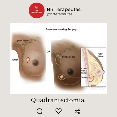 - Quadrantectomia (mastectomia parcial ou segmentar) – remoção de aproximadamente um quarto do tecido mamário, com 2-3 cm de tecido saudável ao redor do tumor, uma ampla excisão da pele sobrejacente e do tecido conjuntivo subjacente (fáscia).